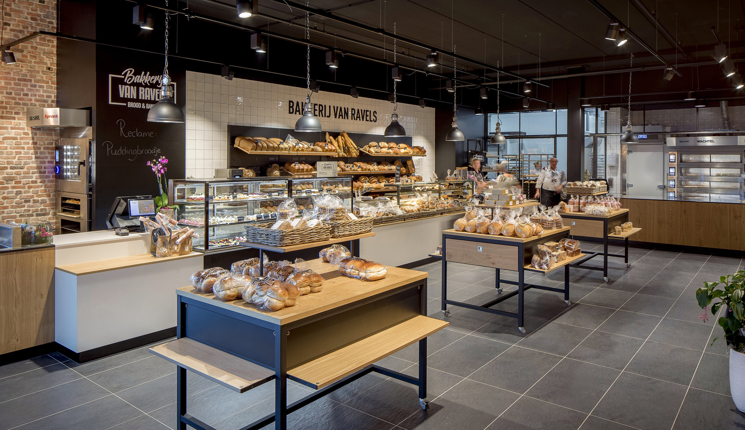 Achter in de winkel is een Bakatelier gesitueerd, waar een bakker in het zicht van de klant de hele dag vers brood bakt. De hele dag door worden hier verschillende specialiteiten gemaakt. De grote werkbank blijkt een echte publiekstrekker. Een stalen pui met glas geeft een doorkijkje naar het magazijn met de vriezer.